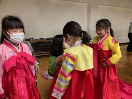 民族衣装を着て、記念写真を撮りました。「かわいい!」
