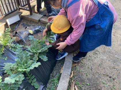 大根ジャンケンをして、収穫します。「よいしょ!!」
