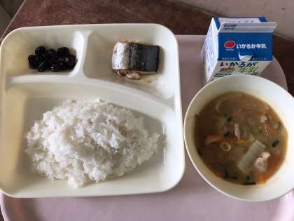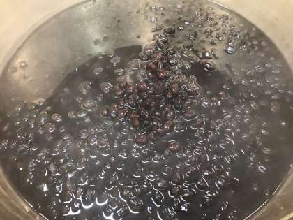 今日の献立の黒豆の煮ものは、おせち料理の一品です。乾物の黒豆を熱湯に浸して戻し、味付けをして弱火で豆が柔らかくなるまで煮ています。とてもおいしかったです。
