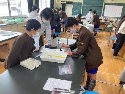 天下茶屋中学校へ授業体験とクラブ活動の体験をしました。