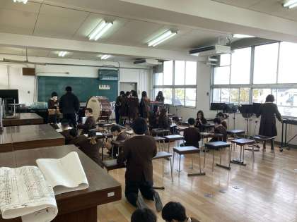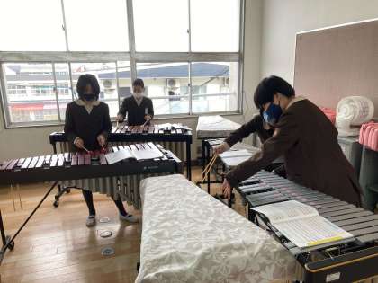 楽器の演奏の練習をしています。コロナ禍では考えられない事でした。