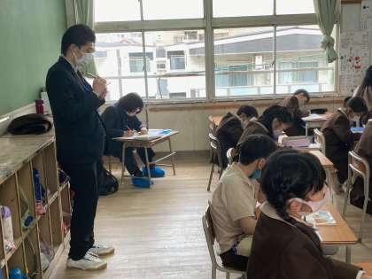 4年のニノ方先生の授業研修です。スクールアドバイザーに指導して頂き、メンター研修で授業の協議を行います。