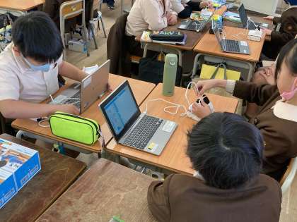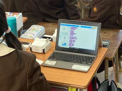 コーディロッキーを使ったプログラミングの授業の様子です。