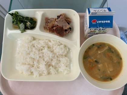 今日の献立のなのはなのおひたしは、一年でこの時期だけ味わうことのできるなのはなをだしをきかせたしょうゆ味の調味液であえ、小袋のかつおぶしをかけていただきます。春を感じる一品でした。