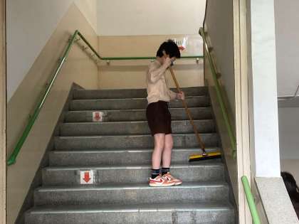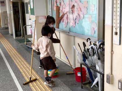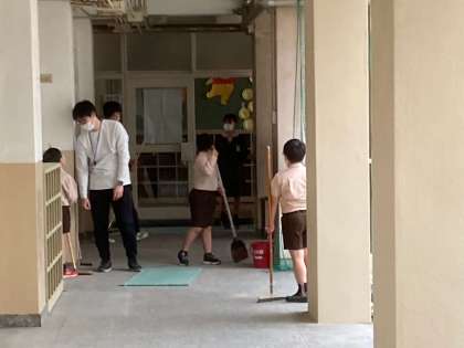 清掃活動は、学校生活の基本です。まだまだ不慣れですが、頑張ってやりましょう。