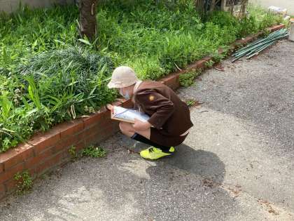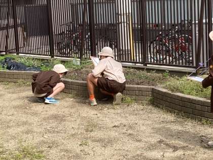 校内にいる生き物を探し、観察してスケッチに描きます。
