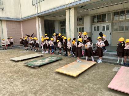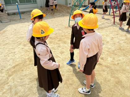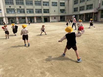 今日は1年生と2年生で交流をするために、運動場で一緒に遊びました。