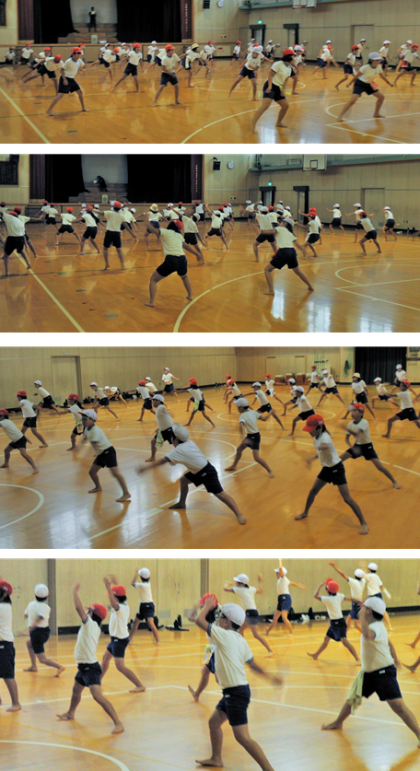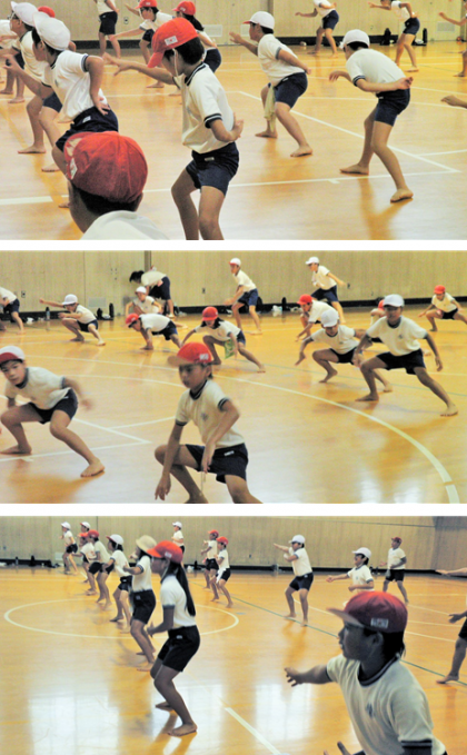 「南中ソーラン」迫力ある演技をめざし心を一つに取り組んでいます。