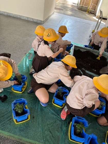 学習園で育てます。水やり、観察頑張って下さいね。