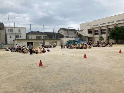 本日最後に、保護者の皆様にお子さんを引き渡す訓練で終了です。ご協力ありがとうございました。この後オンライン接続テスト及び学習があります。合わせてよろしくお願いします。