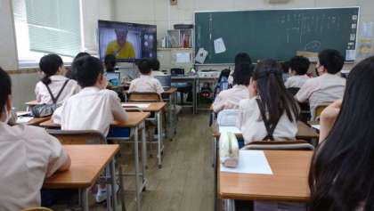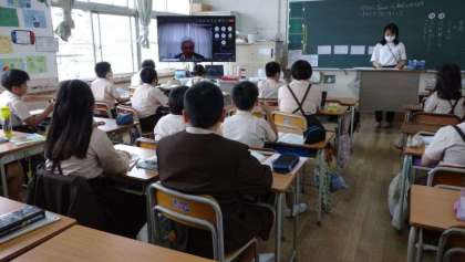 雨が降り出しましたので、本日の全校朝会はTeamsで行いました。