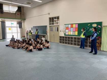 西成警察と区役所の方に来て頂き、交通安全教室をして頂きました。