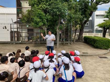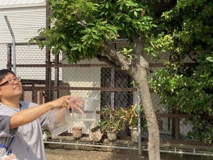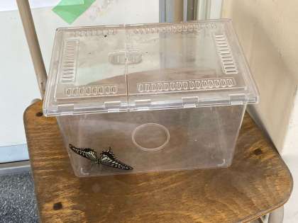 教室で飼っていたさなぎが蝶にかえりましたので、公園で自然に返します。