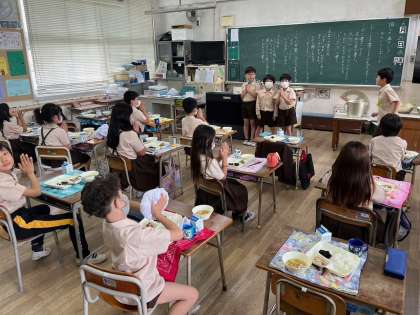 今日の給食では、砂糖やみりん、醤油などの調味料とだしを合わせ、しいたけときざみのりを入れて煮詰めて作ります。ごはんがすすむ一品です。