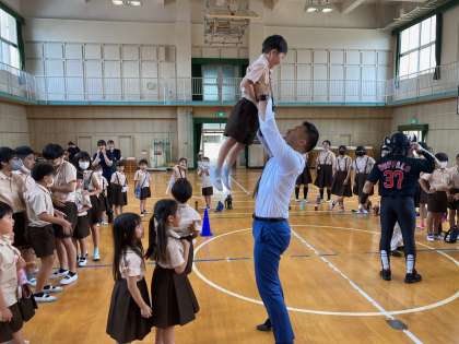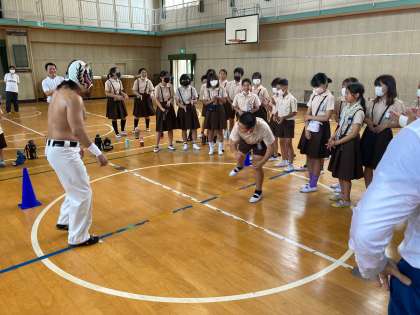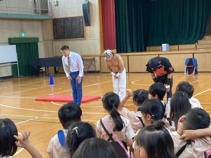 「筋肉触っていいよ」ふれあいコーナーもして頂きました。