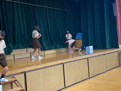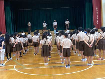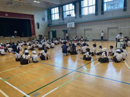 1学期最後の天茶っ子集会を体育館で行いました。ジェスチャーゲームをしました。
