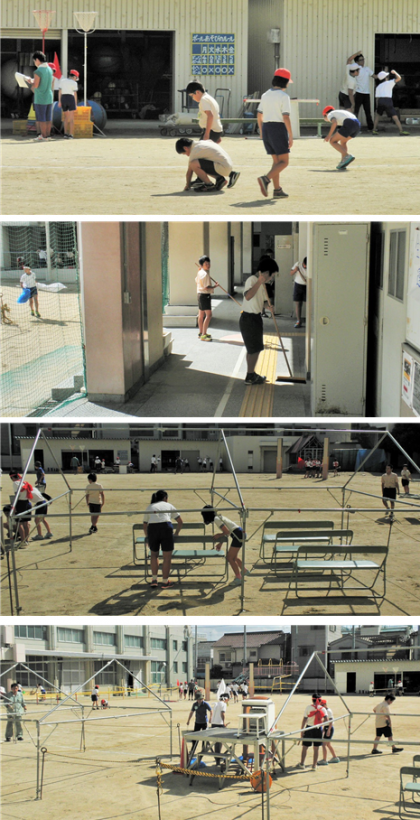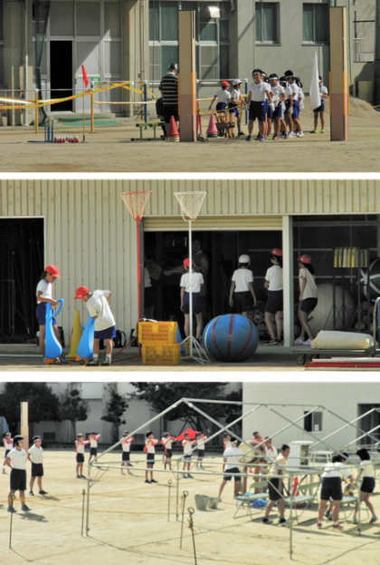 トラックの石を拾う係、掃除をする係、装飾をする係、観覧席の整備の係、用具準備の係・・・