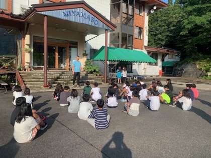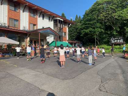 3日目になりました。朝の集い、ラジオ体操をしました。