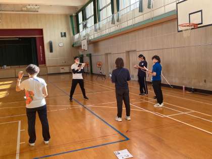 5年生で行います全国体力テストに向けて、科学的な観点からの研修を行いました。本校の研究教科が体育ですので、先生方も頑張って取り組んでいます。