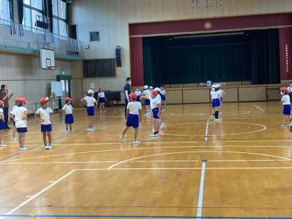 多目的室の狭いところから、体育館の広いところでの練習になりました。振りなどしっかり覚えて下さいね。