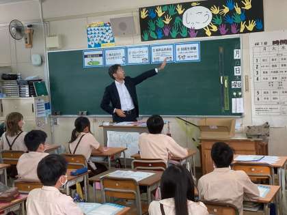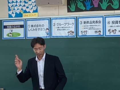 日本証券業協会から講師に来て頂き、キャリア教育の一環として、会社組織や運営のお話しをして頂きました。