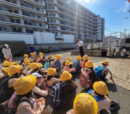 工場に着きました。会社の方に説明をしてもらっています。
