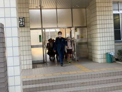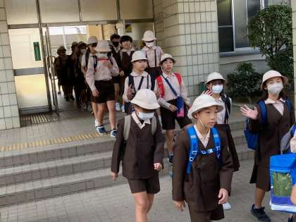 オリックス劇場へ「ジョン万次郎の夢」を観劇します。学校を出発します。