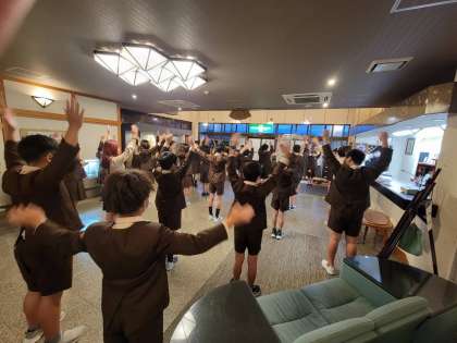 ?朝の集いです。ラジオ体操をしました。