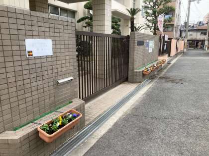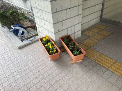 管理作業員さんが、玄関にパンジーを植えてくれました。