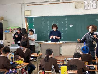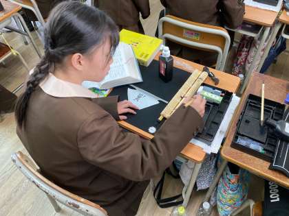 習字の授業で、今年の目標を漢字一文字にして書いています。