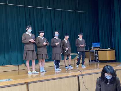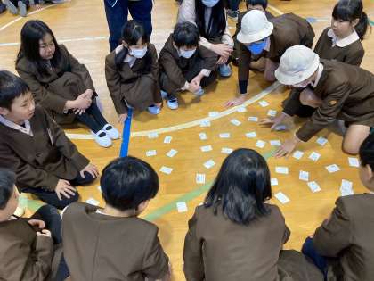 本日は体育館で、天茶っ子カルタを行いました。札は学校生活にちなんだ文章です。