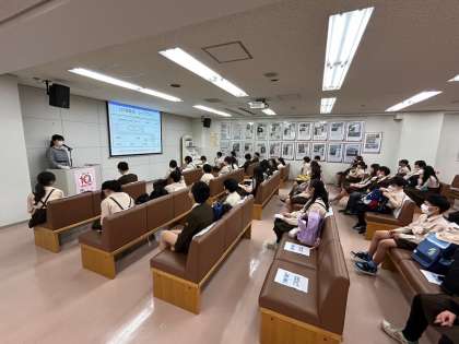 館内見学から戻り、編集についてスライドを使って説明を受けています。