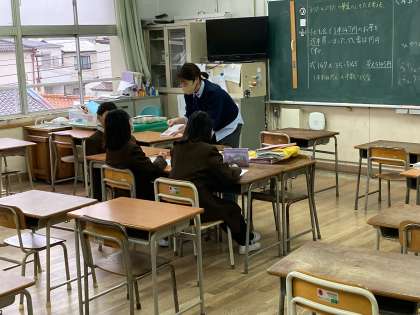 外国から日本に来る児童が増えて来ました。教室で学習できるよう日本語を指導しています。