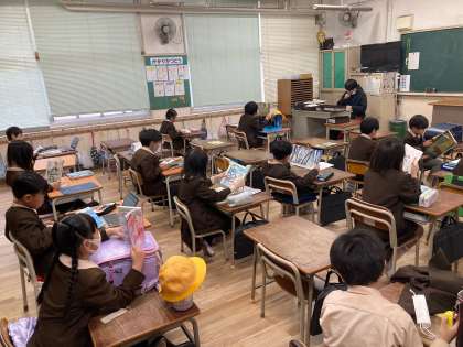 今日は5・6年生がお休みなので、4年生が音楽や放送をしてくれました。