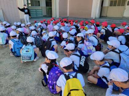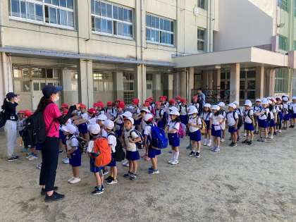 ?浜寺公園へ行きます。1年生は、初めての遠足です。まずは集合です。