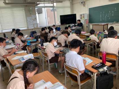 時間になり音楽が流れてきました。静かに読書タイムです。