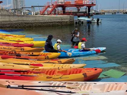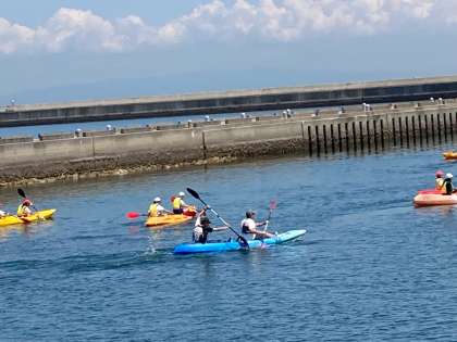 カヌーの乗り方を教えてもらって、いよいよ出廷です。山崎近藤号早い!