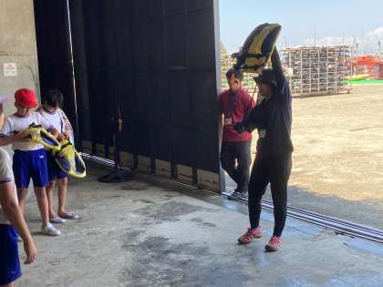お礼を言ってカヌーの活動を終わります。ライフジャケットを返します。