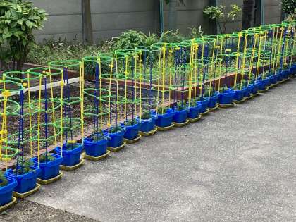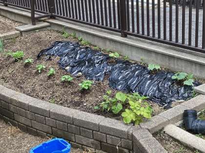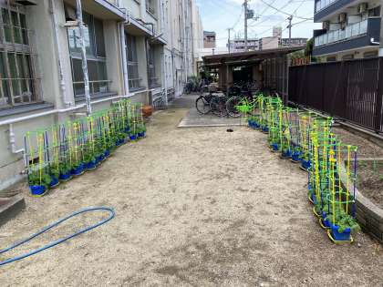 朝顔、ミニトマトや野菜など順調に成長しています。