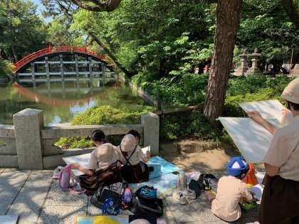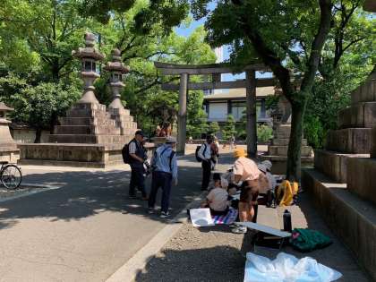 ?名作か迷作か?通りすがる方たちが話しかけて下さり、答えている子どもたちです 。