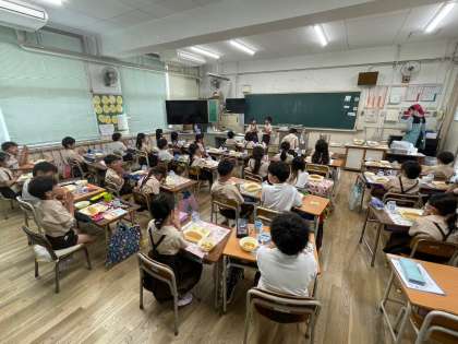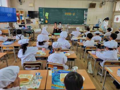 今週は「もぐもぐ週間」です。今回は、しっかり噛んでもらうため、音楽を流している間は、おしゃべりせずに、しっかり噛みます。