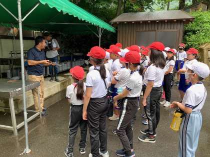 散策は雨のため切り上げ、今から焼き板みがきです。