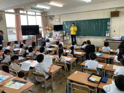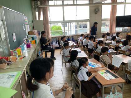 天下茶屋幼稚園の先生が、1年生の授業を参観しました。