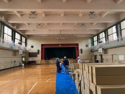 引き続きご迷惑おかけします。体育館の照明化改修工事で、本日より12日まで体育館を使用できません。