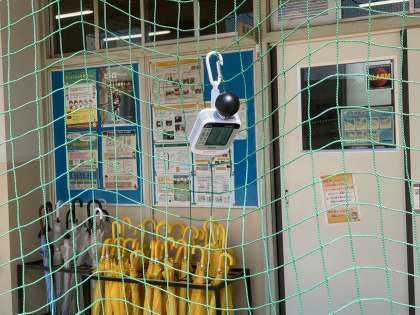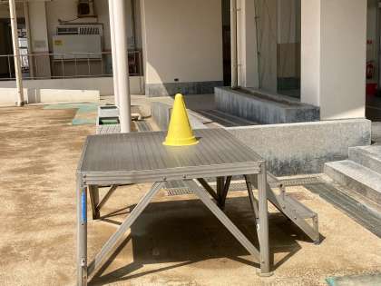 ミスト、熱中症アラーム、「厳重警戒」は黄色のコーン、注意換気の放送など対策をしています。