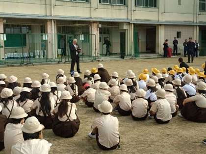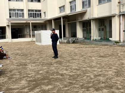 「東南海地震の起こる確率は50年以内に90%の確率でおこると言われています。来るのは予想できますが、いつ来るかわかりません。ですから訓練が重要なのです。釜石の奇跡のお話。普段から身についた訓練を当たり前にした結果、起きた奇跡です。この後の防災講座しっかり学習してくださいね。」