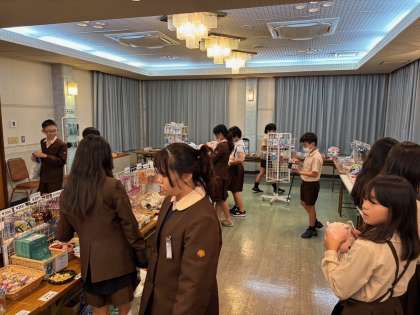 宿舎の売店で土産物を購入します。