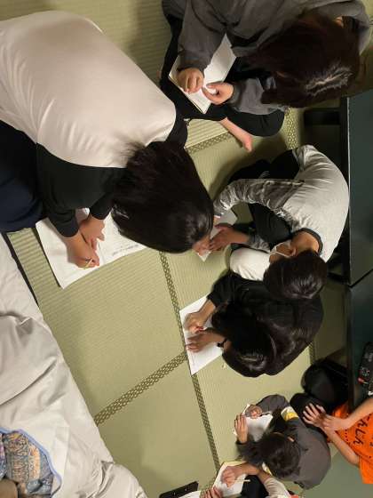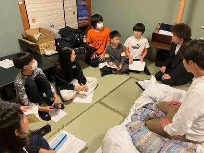 活動の班長会議を行いました。今日の班の活動の反省をして、明日の活動につなげます。