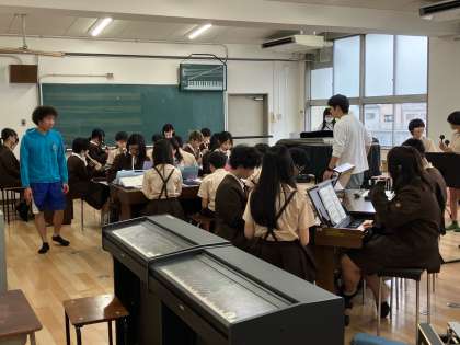 山崎先生に来て頂きました。頑張って演奏しましょう。