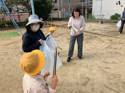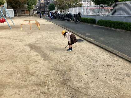 久しぶりの公園清掃です。本日は1年生の当番になっています。